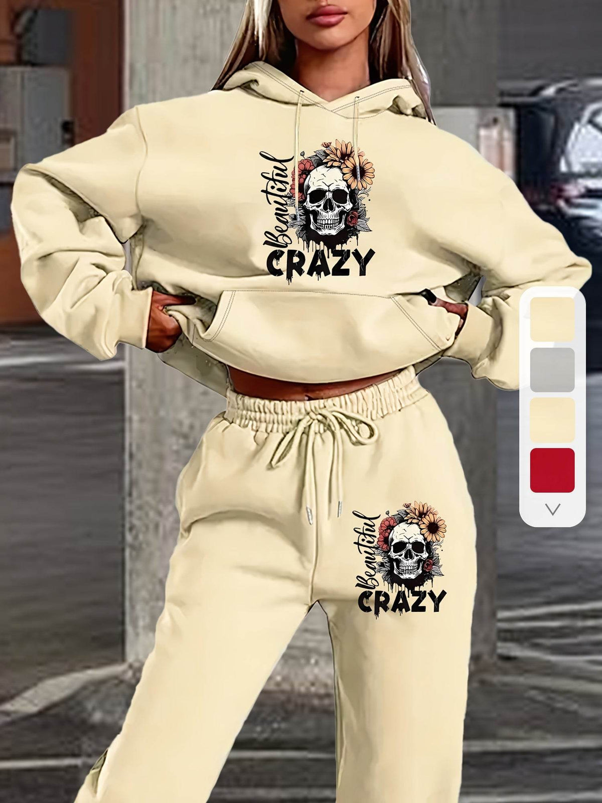 Hoodie Set Skull Style Cozy - S / Light Grey